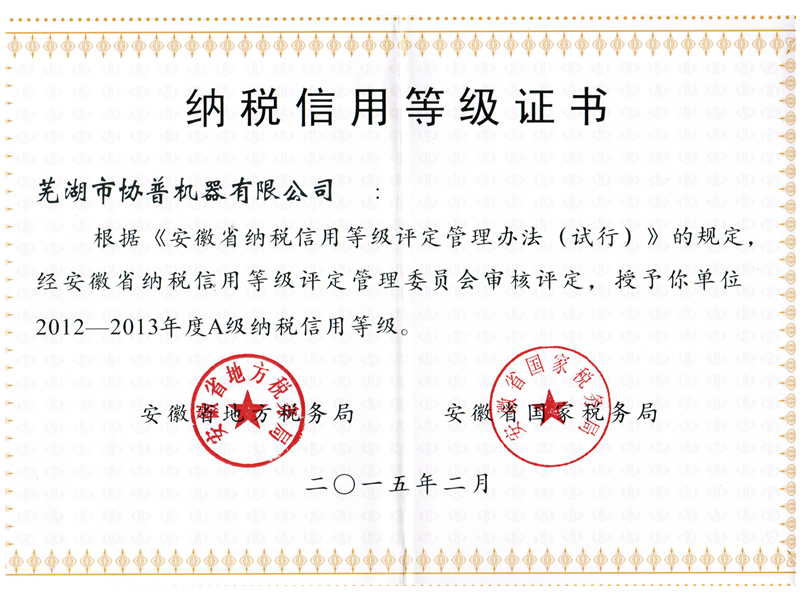 納稅等級證書